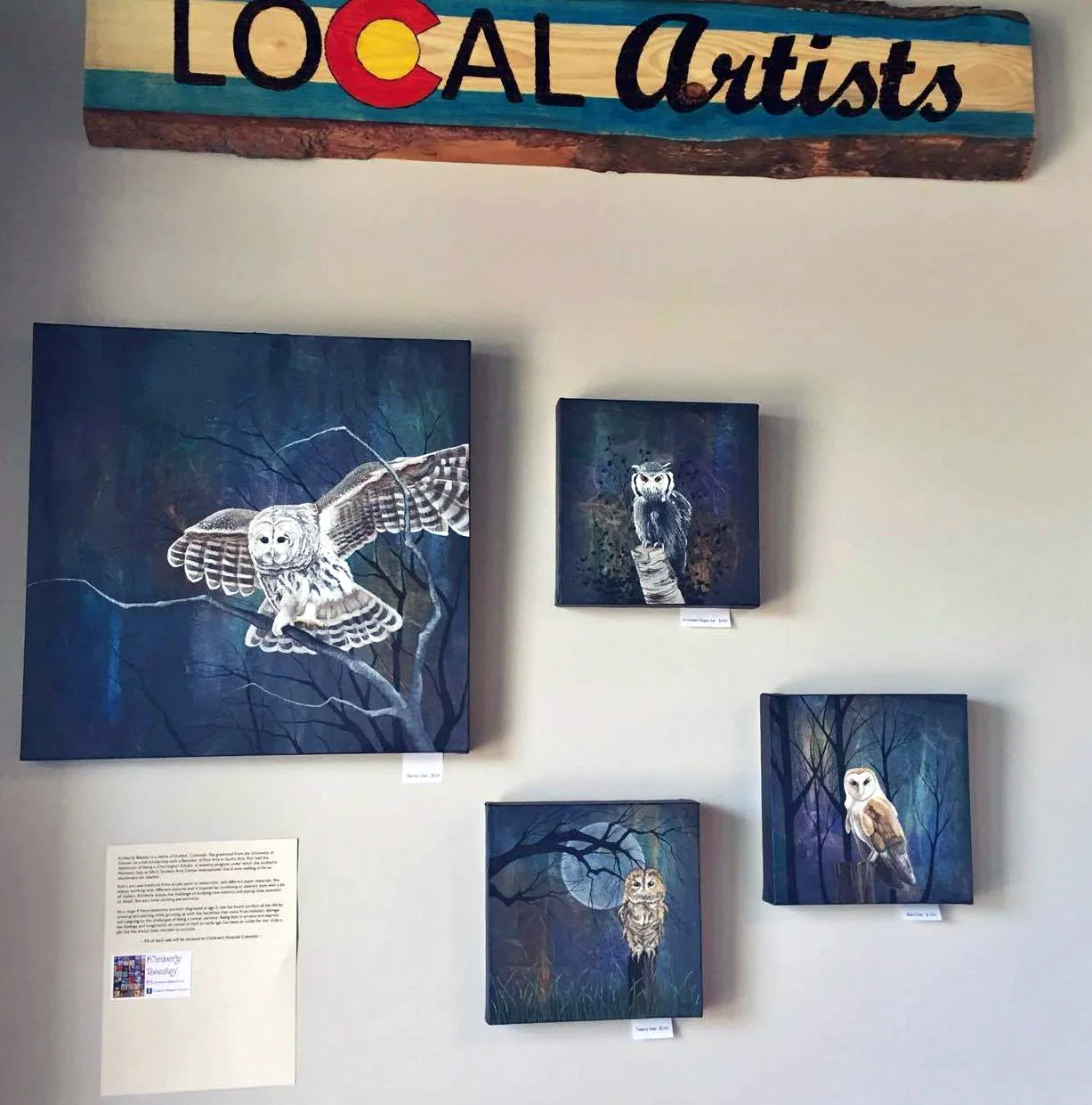 My work is on display for the entire month of July at SuperFruit Republic in Stapleton as part of their Local Artist initiative! I have four owls on display: three 10x10 ($165/each) and a 20x20 ($325). Please swing by and take a look, and enjoy some tasty treats from SuperFruit Republic!