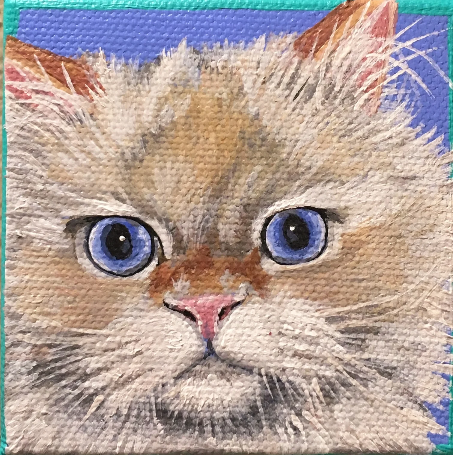 Depending on the commission I use watercolor paint on watercolor paper, acrylic on canvas, or oils on canvas. They also a variety in size from a mini 3" x 3" canvas to as large as 18" x 24".